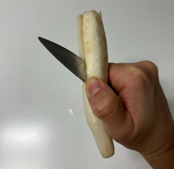 더덕 껍질을 그냥 까면 진액이 묻어서 난리가 나요.