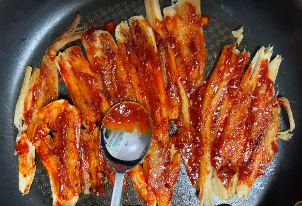 같은 방법으로 구워서 익힌 뒤에 양념장을 발라서