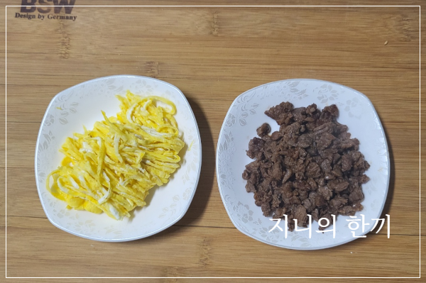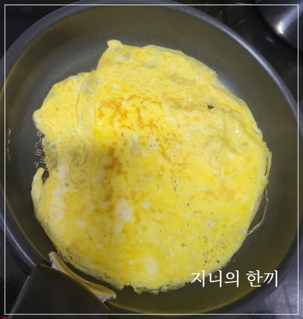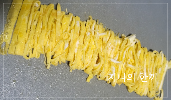 계란 한 개를 풀어서 지단을 부치고