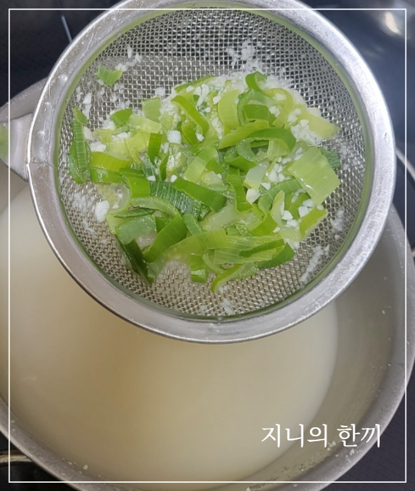 깔끔한 맛을 위해서 파, 마늘은 건져냅니다.