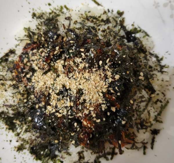 김가루, 깨소금 솔솔 뿌리고 참기름 둘러주세요.