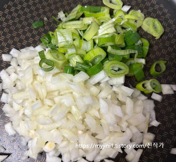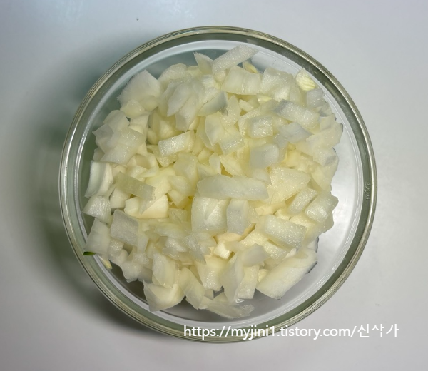 양파 1/3개는 잘게 깍뚝썰어 준비하고
