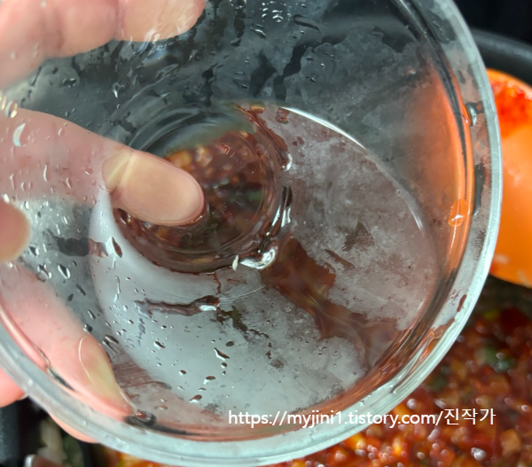 전에 본 적 없던 빨간색 소스에 완전 적셔져서