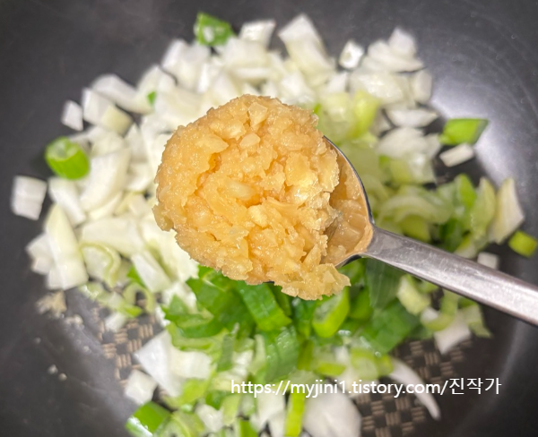 마늘도 한 숟가락 넣어서 볶아주세요.