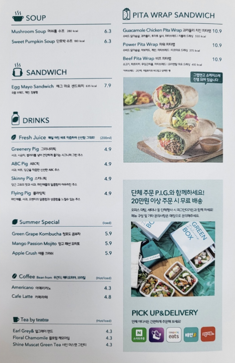 수프, 샌드위치, 음료수 종류가 있네요.