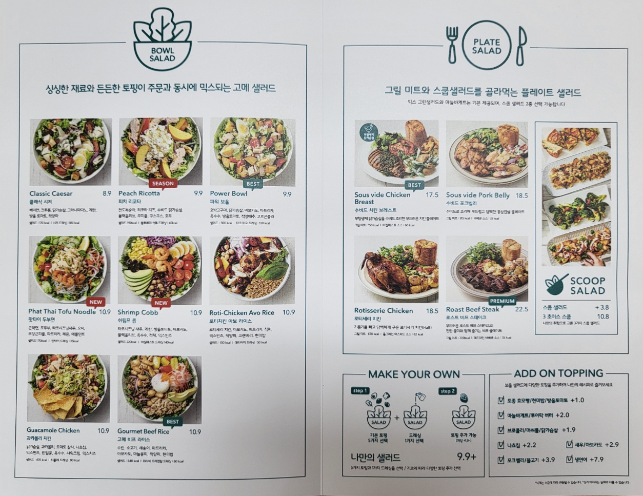 크게 보울 샐러드와 플레이트 샐러드가 있고