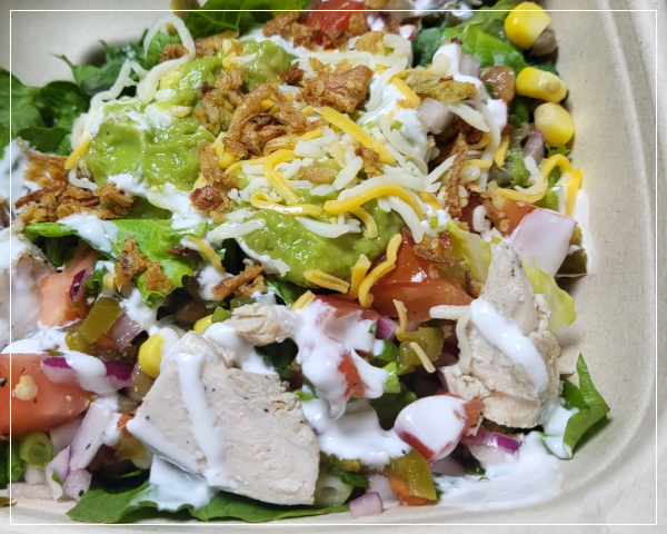 과카몰리 치킨 샐러드도 포장했습니다.