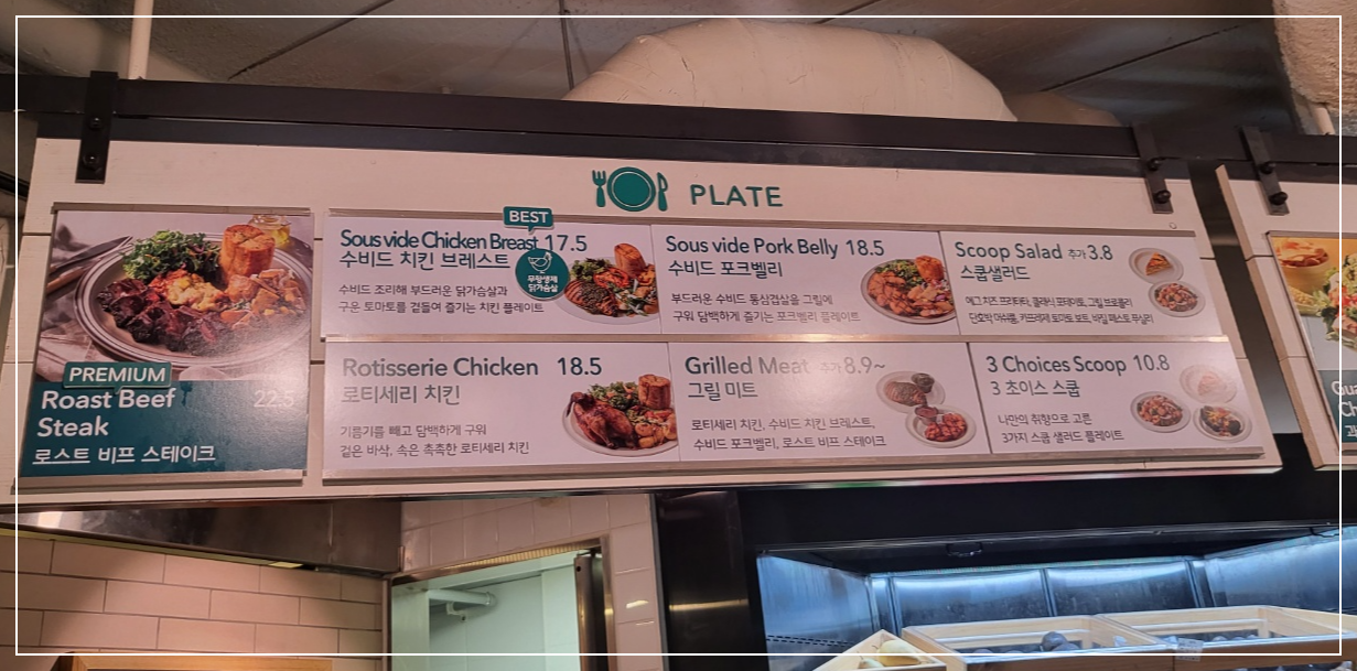 플레이트메뉴는 고기 위주로 되어있고