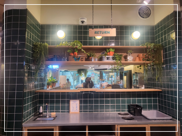 다 드신 접시는 리턴하는 장소에 놓아주세요!