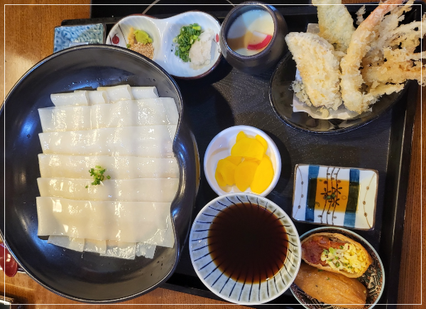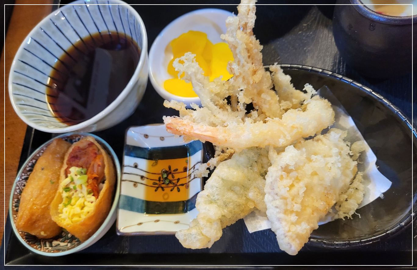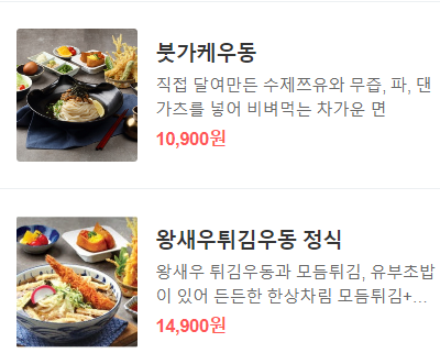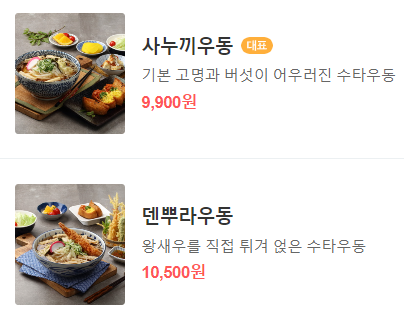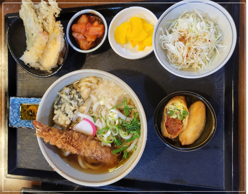 왕새우튀김우동 정식도 사이드 구성은 같네요.