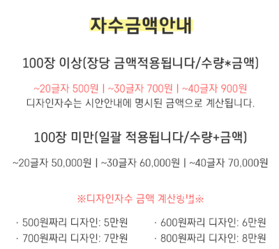 자수인쇄비용 : 5만원(100장미만 일괄 5만원)