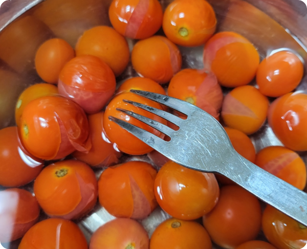 토마토에 십자로 칼집 내서 데치기 많이 하시는데