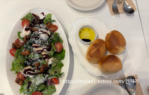 먼저 리코타치즈 샐러드와 식전빵이 나왔습니다.