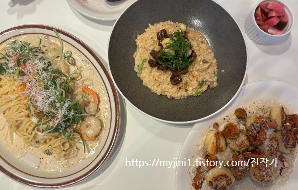 갈릭비프 리조또와 뇨끼가 나왔어요.