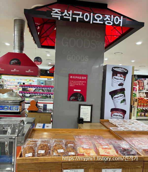 즉석 오징어구이 코너도 있어요.