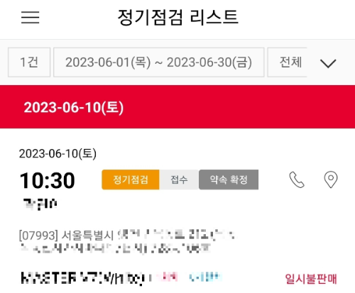 정기점검 방문을 위한 일정을 잡아 주셨답니다.