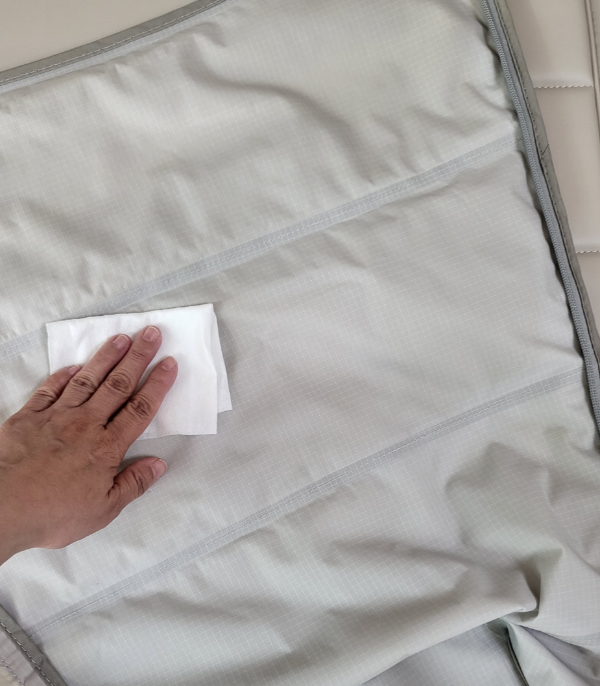 가죽 보호제를 건식 티슈에 짜서
