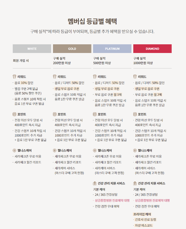 등급이 나뉘고 등급에 따라서 쿠폰이 증정됩니다.