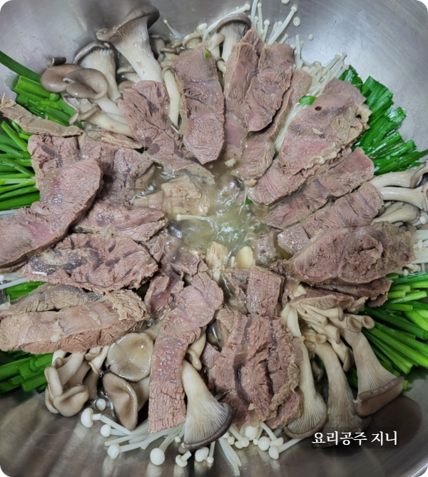 네 번째. 고기 썰고 냄비에 담기