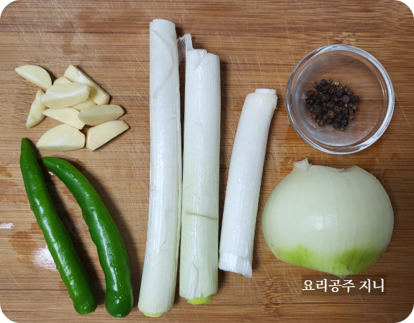 양파와 마늘은 단맛을 빨리 빼기 위해 잘라 넣고