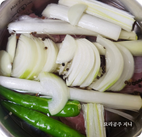 생각이 들어서 아롱사태 수육을 해보았답니다.