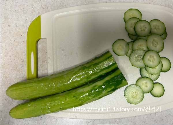 첫 번째. 오이 썰고 절이기