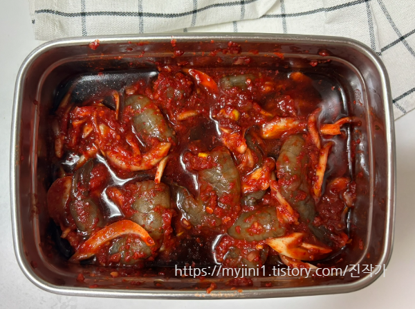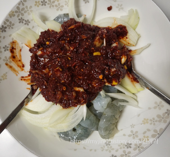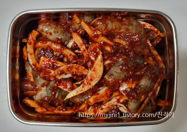 매콤한 새우한마리에 새우장 듬뿍 덜어서