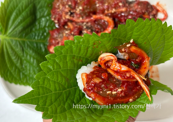 깻잎위에 뽀얀 쌀밥 한 숟가락 올리고