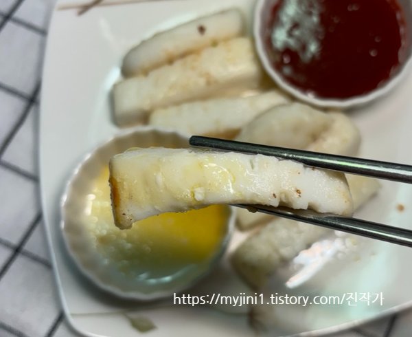 들기름장과 초고추장에 찍어 먹어보았어요.