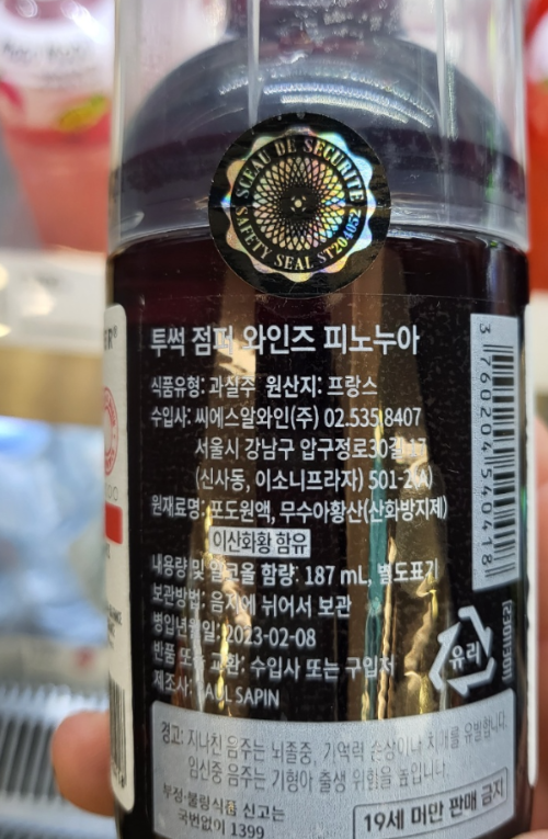 뒷면에 병입 연도가 2023년 02월 08일로