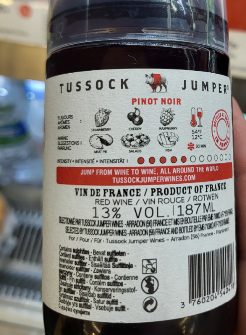 187ml 용량의 투썩 점퍼 피노누아를