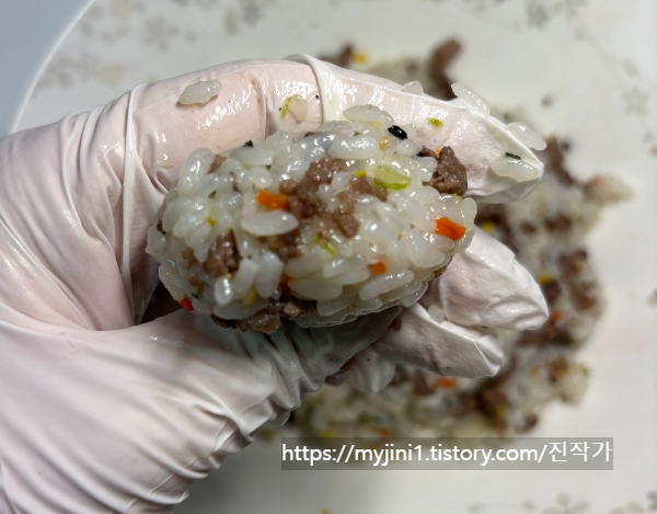 밥을 살살 밀어 넣어주면서 모양을 만들어 주시면