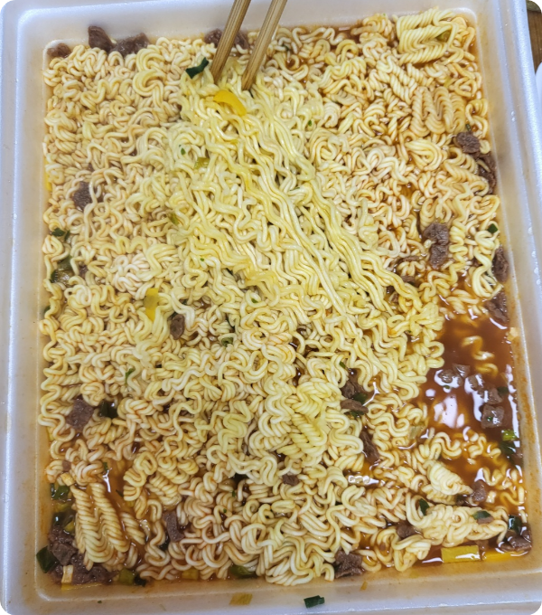 팔도 점보 도시락 라면은 면이 좀 더 두껍고