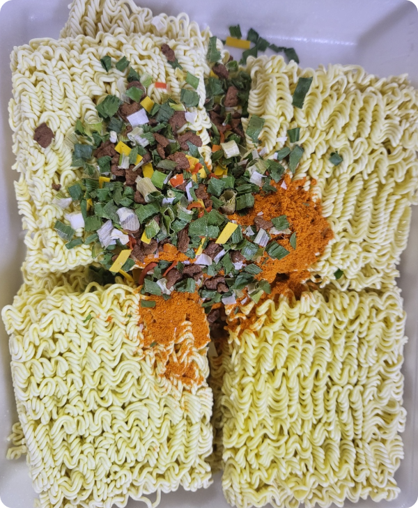 라면은 이렇게 네 부분으로 나누어서 들어있는데