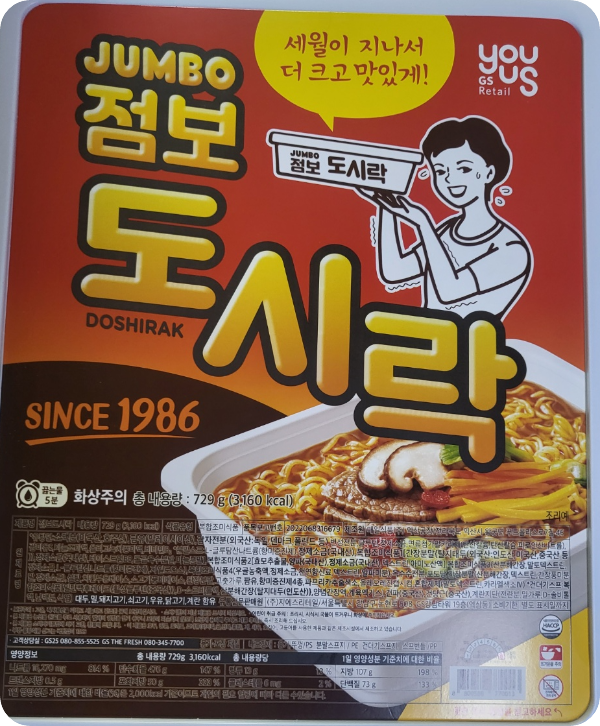 팔도 점보 도시락 라면은 면이 좀 더 두껍고