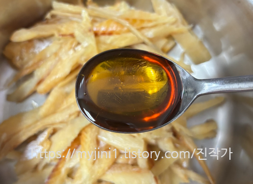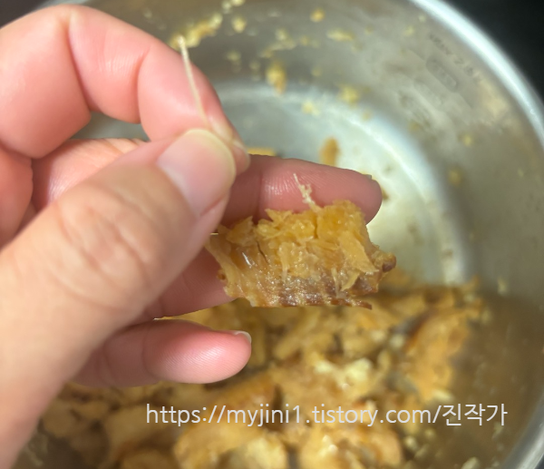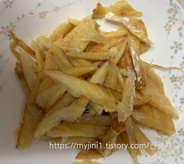 이렇게 볶다 보면 황태살이 수축되면서