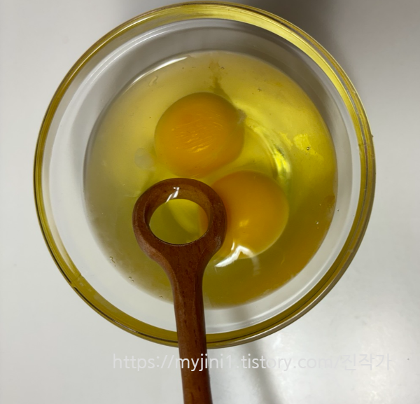 계란 두개 잘 풀어서 저어주시고