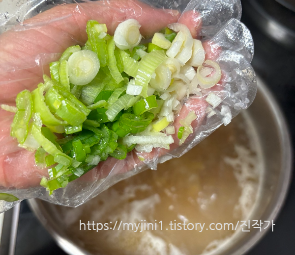 파 반 뿌리도 송송 썰어서 넣어주세요.