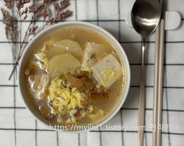 미리 끓여놓은 황탯국 한 그릇에