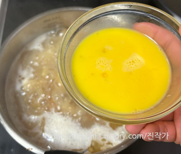 계란 물은 먹기 전에 부어 익혀 드시는 게
