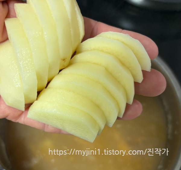 썰어놓은 감자 넣어주시고
