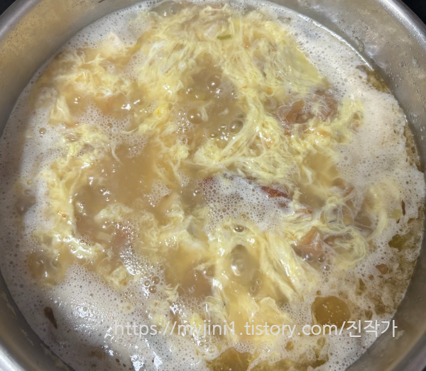 국이 끓지 않은 상태에서 계란물을 부으시면